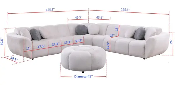 Ottoman: 41" Diameter 17.5" Height: 40.16" x 40.16" x 16.93" 46 5.38