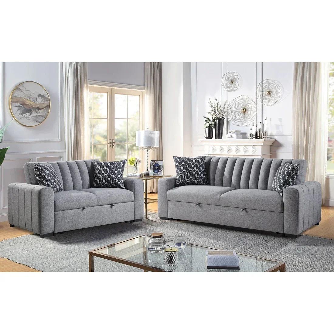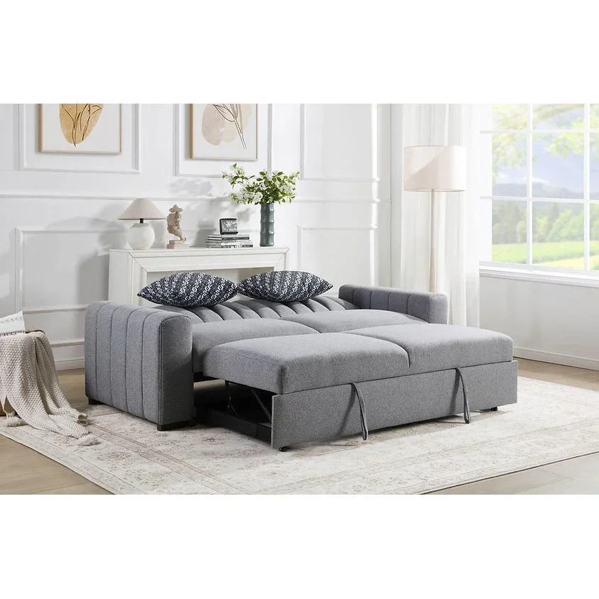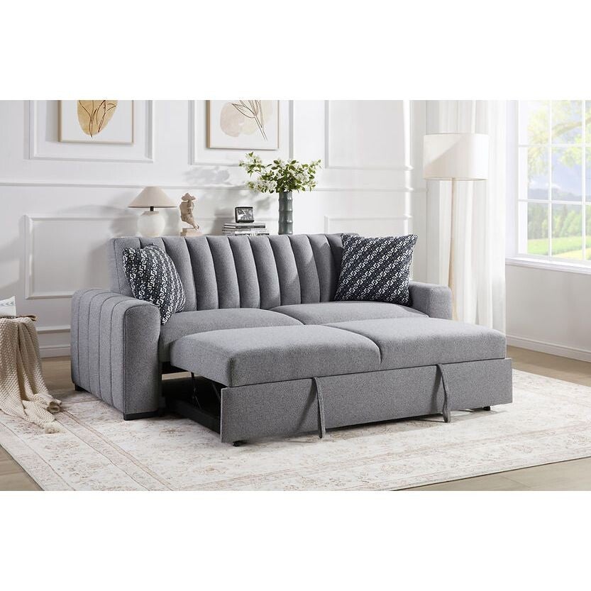 Introducing the S351 Zaira Sofa & Loveseat from New Era Innovations, a stunning statement in versatile design. This elegant pullout sleeper futon in chic grey Boucle Fabric seamlessly transitions between a sophisticated sofa/loveseat and a spacious sleeper, perfect for any room setting seeking both style and functionality. Complete with two stylish accent pillows, the Zaira Collection redefines comfort and convenience. Each piece is meticulously packaged for secure delivery, ensuring you receive top-quality wholesale furniture every time. Elevate your home with the S351 Zaira, where luxury meets practicality.