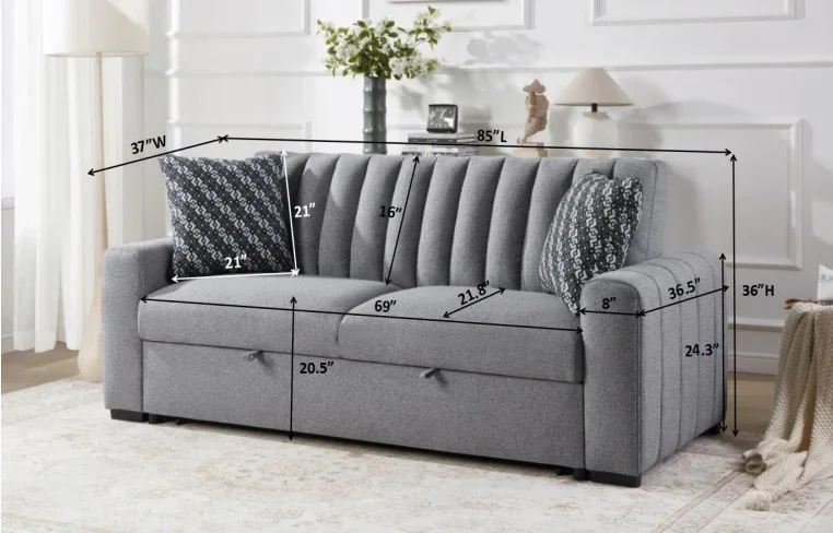 85"L X 72.5"W (Complete Pullout Sleeper)
