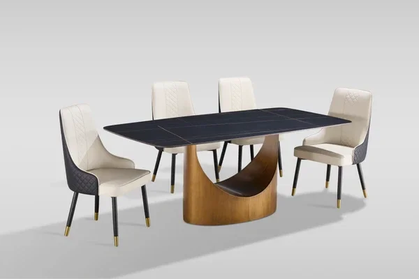 Designed to complement the table’s modern lines, the dining chairs offer a dual-tone aesthetic with exceptional attention to detail: