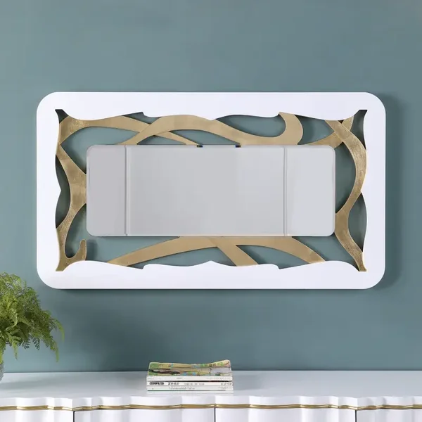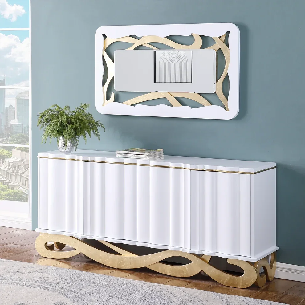 Material: Console (Wood frame, door in waved and carving design) Mirror (Wood frame, silver center mirror)