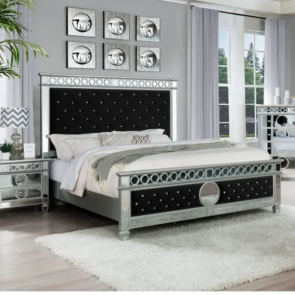 Color: Silver and Grey, Blue and black Velvet on the Headboard