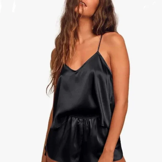 A6690,Women V Neck Nightwear Navy and Black
