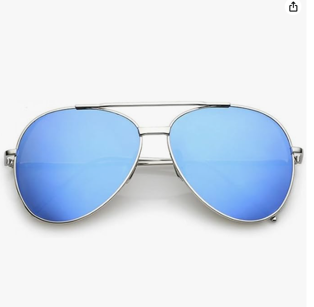 Men and Women's Fame Mirrored Blue Flat Lens Aviator Sunglasses, Silver