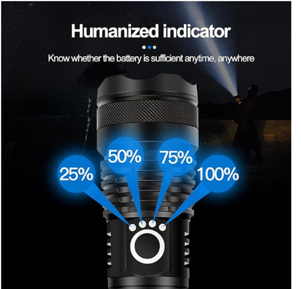 LED Flashlight, Battery Indicate USB Charging, 20W Ultra Bright Flashlight for Outdoor Lighting, for Camping Biking Hiking Outdoor Home Emergency